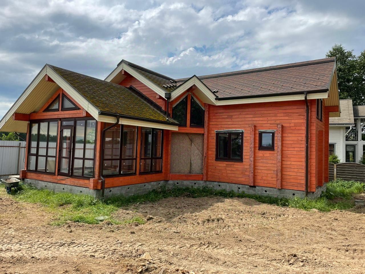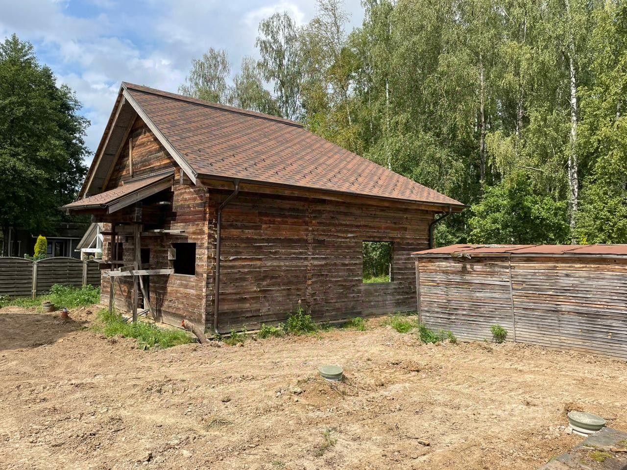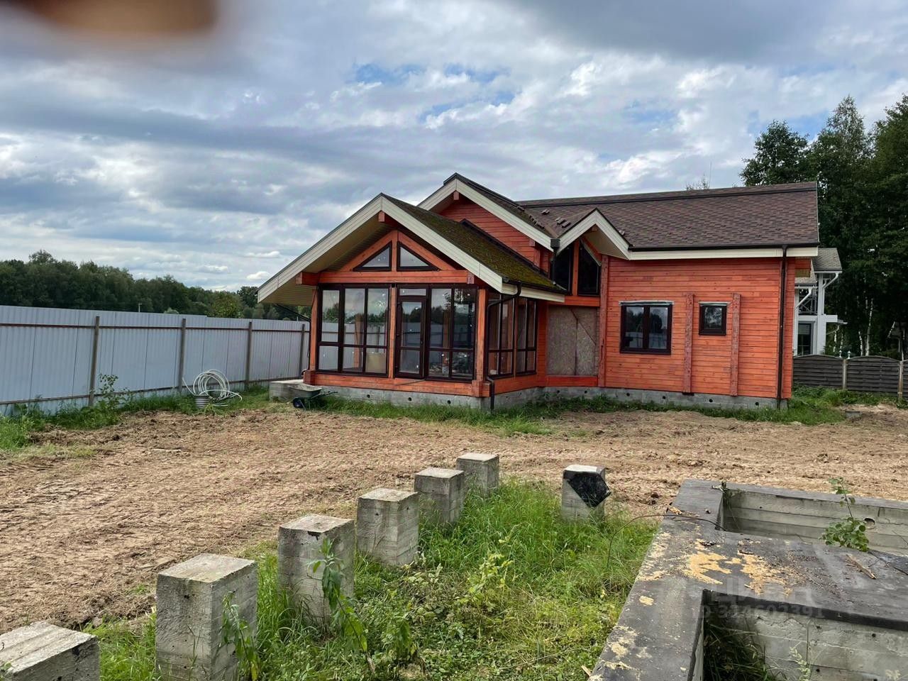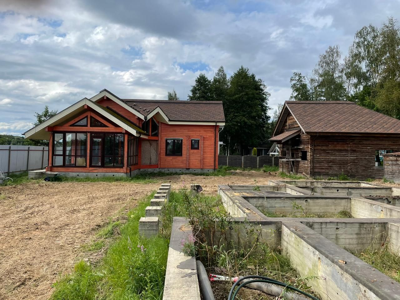 КП Финская Деревня, уч. 164. Расположение : Московская область, Чеховский район, сельское поселение Стремиловское, деревня Поповка. Площадь участка 1500 м2 (назначение: ИЖС). По всему участку проведена дренажная система. Электричество 15 кВт на участок. Газификация (газ подведен и оплачен). Инженерные коммуникации: Устройство электрического ввода и заземления в дом, гараж, гостевой дом с баней. Магистрали отопления, горячего водоснабжения и рециркуляции ГВС дома, гостевого дома с баней. Магистраль холодного водоснабжения дома, гостевого дома с баней. Бурение скважины на глубину 55м. На участке есть готовый фундамент (ростверкно- столбчатый) под строительство деревянного дома из клееного бруса, общей площадью 395,4 м2. Имеется готовый эскизный проект с рабочей документацией на строительство дома. Двухэтажный гостевой дом с баней, общей площадью 120,9 м2 , из клееного бруса. Клееный брус изготавливался из ангарской сосны. В доме проведены инженерные коммуникации: отопление, водоснабжение, канализация, электричество, система теплого пола. При монтаже инженерных коммуникаций использовались материалы немецкого производства. В гостевом доме есть застекленная веранда с зоной для барбекю. Двухэтажный гараж с мастерской и котельной из бруса сибирской лиственницы, общей площадью 140м2. Готовый монтаж стен, балок, перекрытий и кровельная система. Гараж без внутренней и внешний отделки. Имеется готовый эскизный проект. Территория поселка огорожена, проезд через КПП с автоматическими воротами. Круглогодичный подъезд и охрана. Зимой чистка дорог, освещение в ночное время, вывоз мусора. Многие соседи живут круглогодично. КП Финская Деревня расположен в экологически чистом месте Подмосковья, с трех сторон окружен лесом. Не далеко есть водоем.