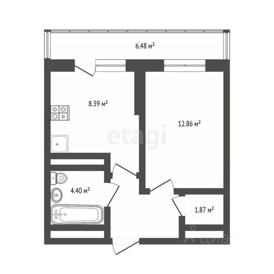 Главная особенность объекта — просторный балкон площадью 6,5 кв.м с выходом из кухни.