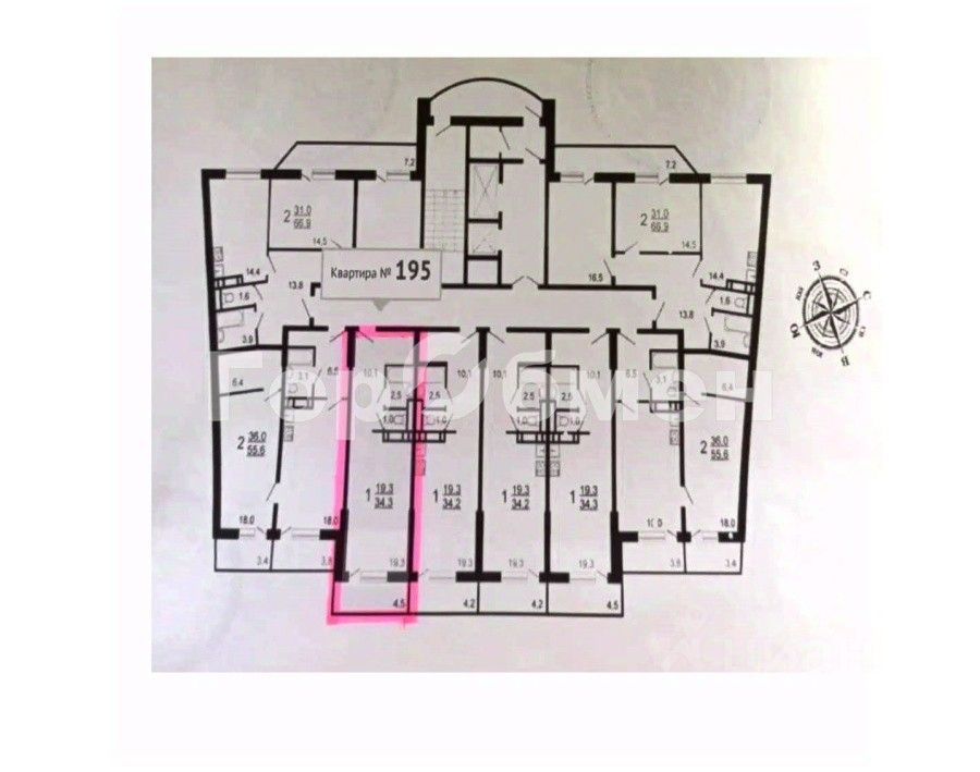 Общая площадь с учетом лоджии - 34,3 кв.м, общая площадь без учета лоджии - 32,9 кв.м., жилая площадь - 19,3 кв.м.