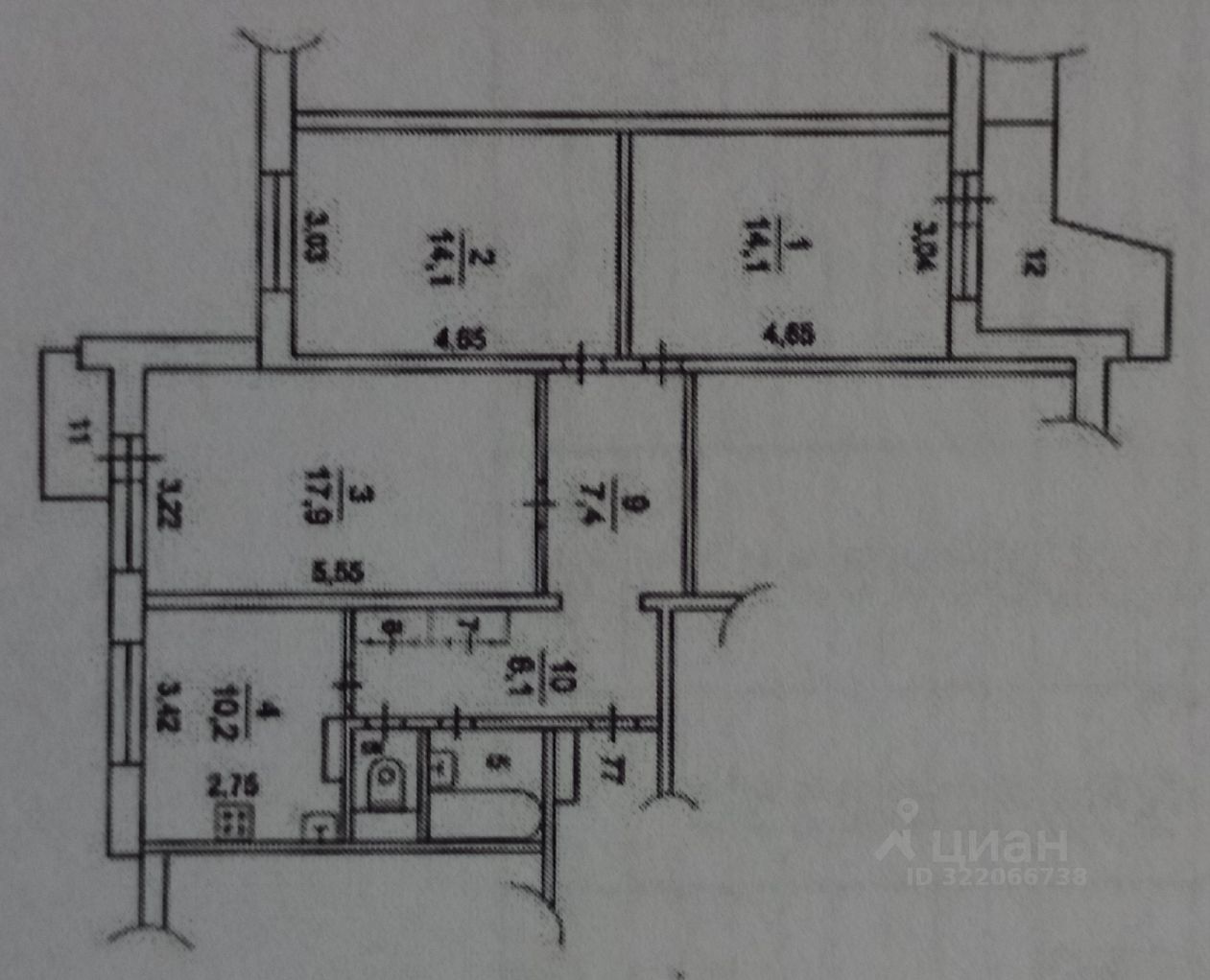 Жилая площадь46,1 м2