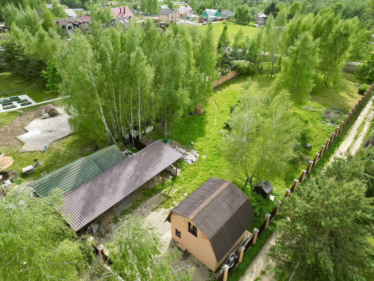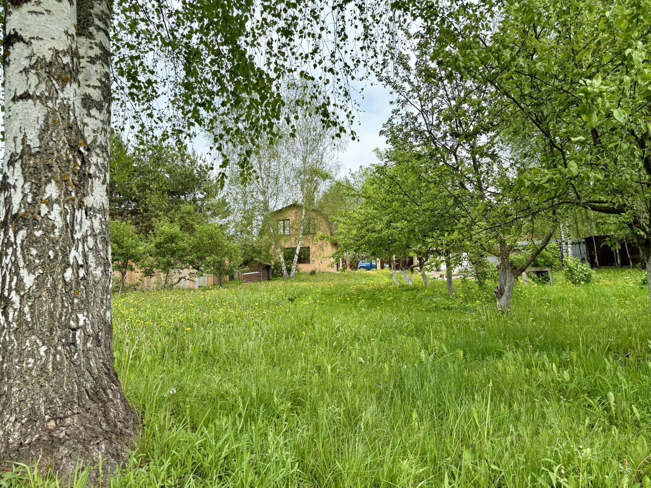 На участке яблоневый сад, навес для авто по периметру капитальный забор!