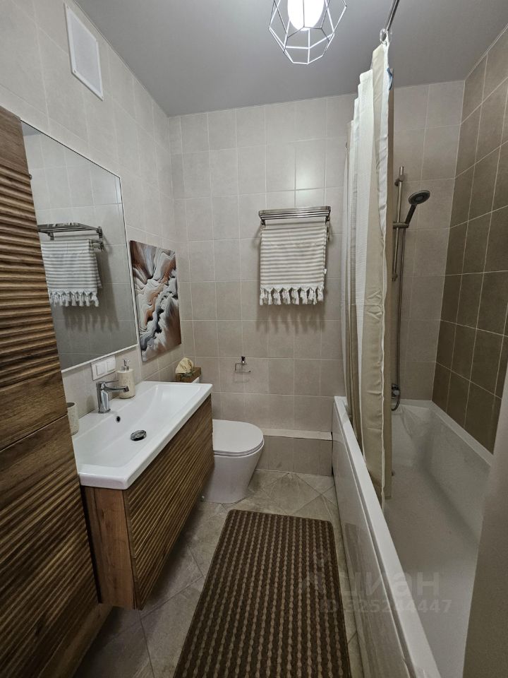 Квартира полностью готова для комфортного проживания. Здесь есть вся необходимая мебель на кухне и в комнате. В ванной комнате установлена ванна и удобная мебель. В квартире имеется полный набор новой техники: кондиционер, большой холодильник, большая посудомоечная машина, большой телевизор и стиральная машина. Для удобства проживания проведён интернет.